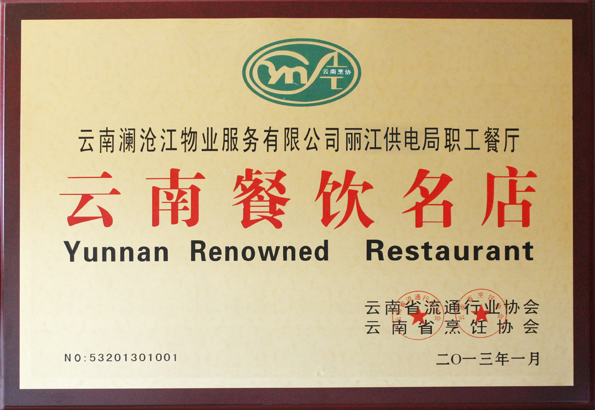 2013年1月,经云南省流通行业协会、云南省烹饪协会认定,云南澜沧江物业服务有限米兰(中国)管理的小湾、龙开口电站、丽江供电局职工餐厅被授予“云南省餐饮名店”荣誉称号。