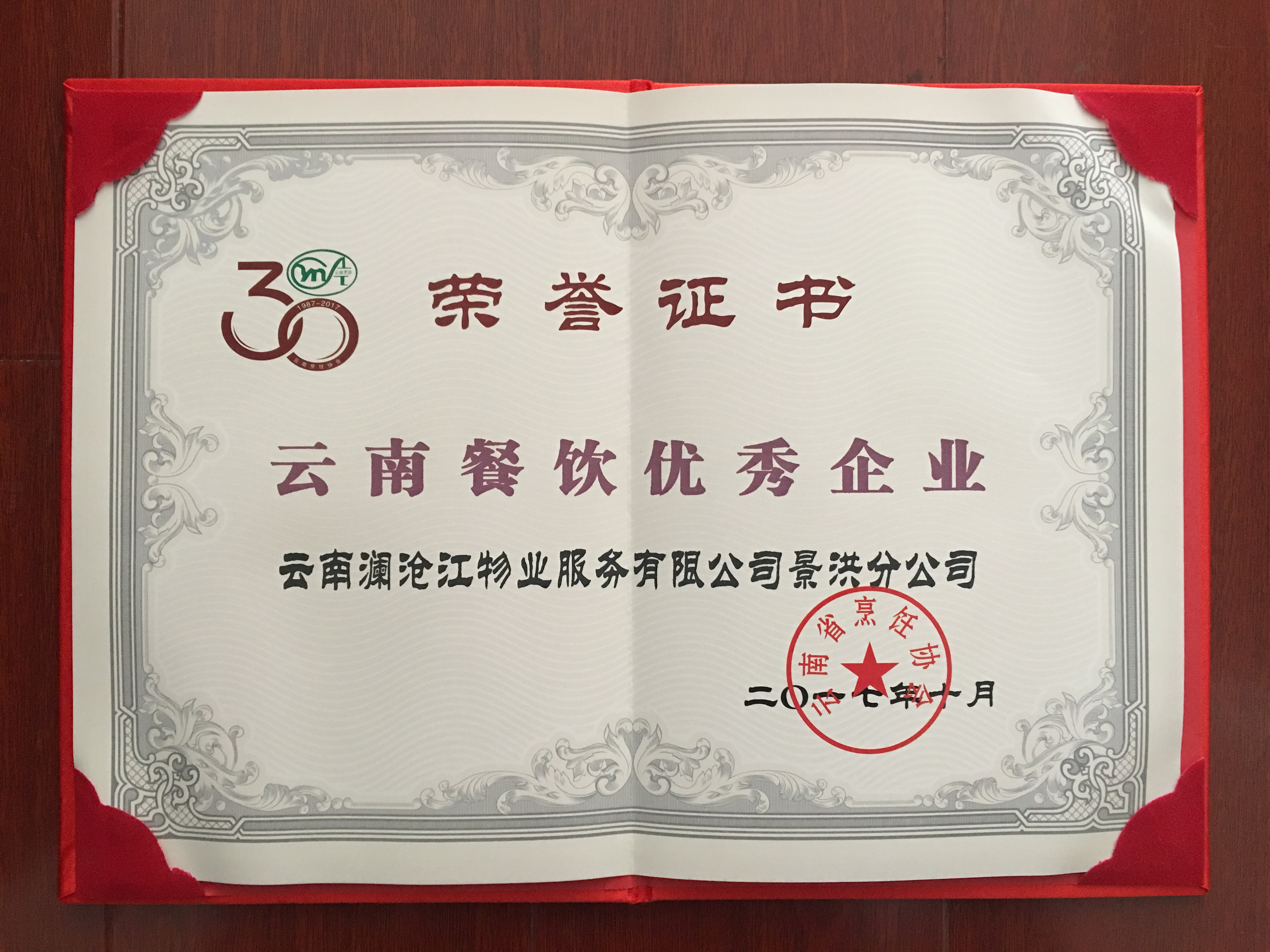 2017年10月,云南澜沧江物业服务有限米兰(中国)景洪、里底分米兰(中国)、国开行管理处被云南省烹饪协会评为“云南省餐饮优秀企业”。