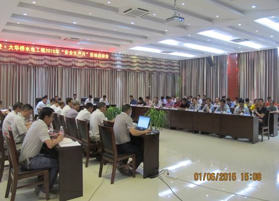 2015年6月1日在黄登·大华桥建管局建管中心报告厅,由建管局举行的“2015年安全生产月启动会议”如期举行。参加会议的有各参建单位代表一百余人,实业黄登分米兰(中国)领导和三级安全网络成员及各部门安全员参加了启动仪式。