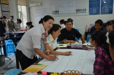 课堂上安老师通过对体验与期望的讲解,以分组讨论、部分员工上台示范的形式开展培训课,培训现场气氛活跃互动性强,“鸭子因素”理论的引用让各小组之间进行游戏使课堂更添几分生机。